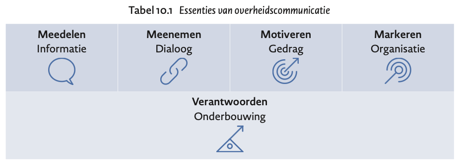Ons boek is gestoeld op vele jaren ervaring en een stevige combinatie van theorie en praktijk. We beschrijven waar het vak vandaan komt, waar het nu staat en waar het naartoe beweegt. Met voorbeelden uit alle bestuurslagen en beleidsterreinen wordt duidelijk hoe communicatiewerk steeds belangrijker is voor het functioneren van onze democratie. We schreven dit boek voor de dappere professionals die dagelijks aan de lat staan voor deze complexe opgaven, die in de storm durven staan en volhouden. Het boek biedt ook houvast voor bestuurders, beleidsmakers en dienstverleners die communicatie (nog) beter willen begrijpen en benutten.